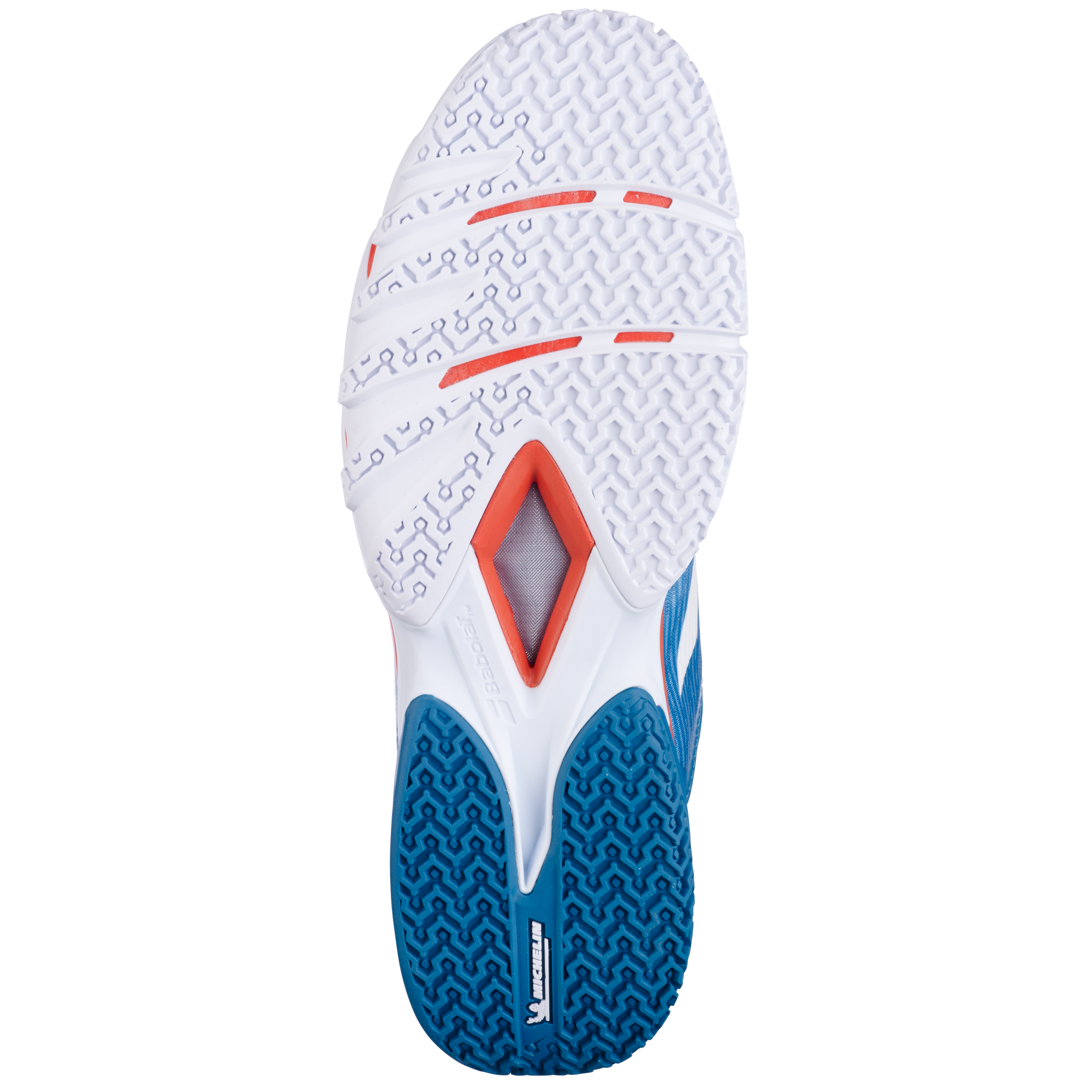 Die geformte OrthoLite®-Innensohle garantiert eine komfortable Passform, hohe Dämpfung und langanhaltende Atmungsaktivität. Für optimalen Grip und Langlebigkeit sorgt die bewährte Michelin-Außensohle, die speziell für die extremen Belastungen im Padel entwickelt wurde und zuverlässige Traktion bei schnellen Stopps und Richtungswechseln bietet.