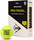 Der spezielle Kern und hochwertige Kunstfasern sorgen für eine überragende Haltbarkeit. Eine größere Geschwindigkeit und ein höheres Absprungverhalten als beim klassischen Dunlop Padel Ball machen den Pro Padel zum idealen Turnierball.